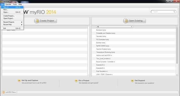 Ahora que el trabajo con Multisim, es tiempo para LabVIEW. Abrir el LabVIEW y encontrará el parpadeo de la pantalla de inicio. Abra un nuevo VI en el menú archivo.