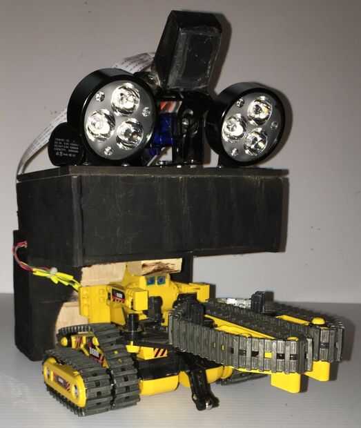 En este proyecto estoy construyendo un modelo conceptual de la disposición de bomba Robot. Pensé que la idea de construir un robot que se puede enviar en una habitación totalmente oscura para recuperar un elemento como un artefacto explosivo y llevarlo a otro lugar sería un buen desafío. Este robot será controlado por un joystick. El robot tendrá luces y una cámara de video por lo que el operador puede controlar con la palanca de mando mirando una pantalla de la computadora en un lugar totalmente diferente. Este proyecto es sólo una demostración de la capacidad y no pretende recuperar cualquier ordenanza vivo.