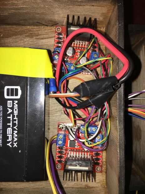 Cada regulador del motor tiene dos circuitos idénticos por lo que puede manejar dos cosas. Uno de los controladores de motor se utiliza para los motores de la pista. El otro controlador de motor se utiliza para el motor de la garra y la iluminación LED. El regulador del motor utiliza una entrada A y B que establece altas y bajas en ejecutar el motor adelante, revertir o detener. Estoy usando modulación de anchura de pulso (PWM) en los pernos permiten controlar velocidad del motor. Los motores en el robot fueron diseñados para funcionar a 3 voltios. Estoy usando 12 voltios pero estoy encendiendo y muy rápidamente por lo que el voltaje promedio es mucho menor.