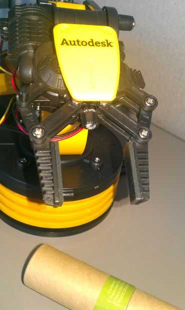 El diseño del brazo consistirá de dos vínculos de cuatro barras para los dos lados de la pinza, con un pistón suministra la fuerza. La cabeza de la pinza será revestida en goma.