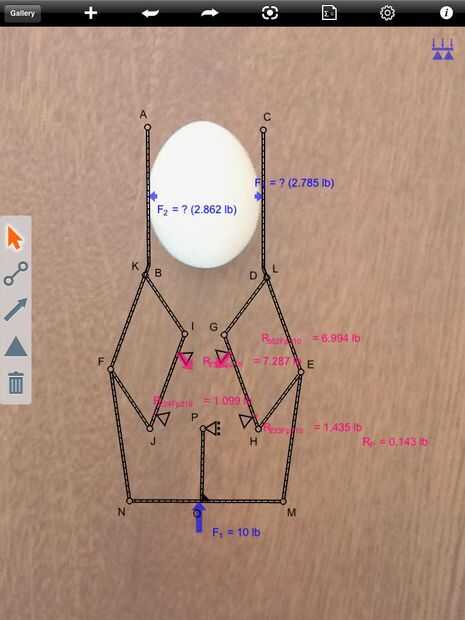 Para encontrar qué fuerza podemos aplicar al pistón para lograr estas fuerzas en la garra, ahora abren el mismo archivo en Autodesk ForceEffect, otra aplicación para tu dispositivo Android o iOS