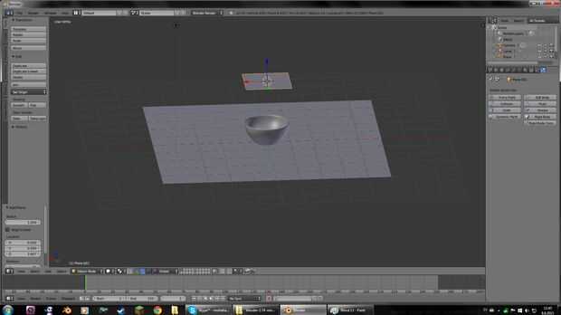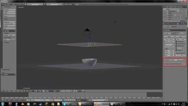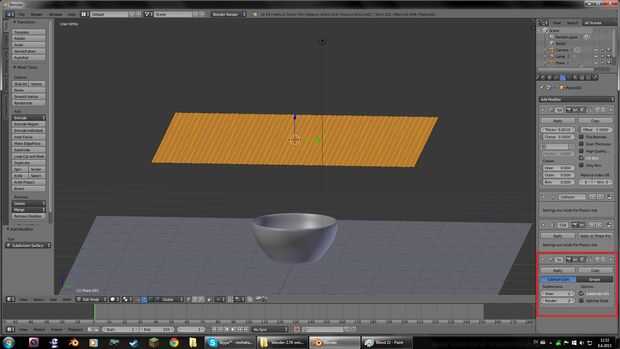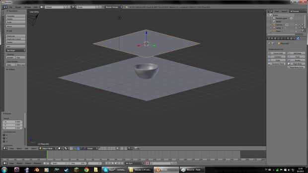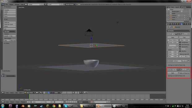 Primero agregue un plano sobre el tazón de fuente. La escala para arriba (yo usé 3). Aquí es donde fallado. No agregue un modificador de solidificación a la tela. Añadir un modificador de la colisión y luego un modificador de superficie de subdivisión y dejar como está (ver: 1 Render: 2).