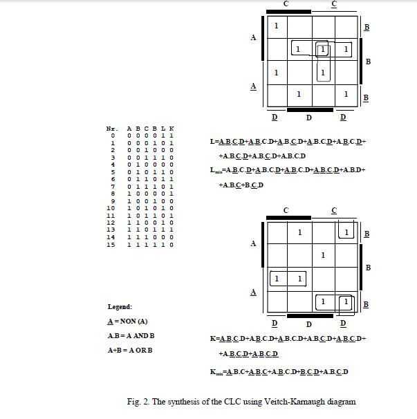 Figura 2 en que se muestra el proceso de minimización con diagrama de Veitch-Karnaugh y