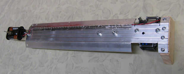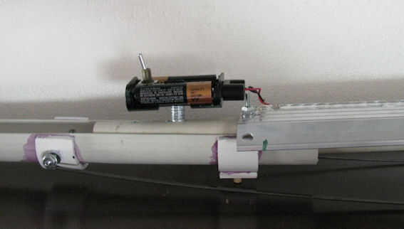Una vez que la batería se monta, se extienden los cables del motor a lo largo de la parte exterior de la placa posterior a la batería. Compruebe el motor. El engranaje de gusano debe girar para que la clavija del eje se desplazará hacia el motor si se coloca en la ranura en la zona de captura. Si gira al revés invierta los cables de la batería.
