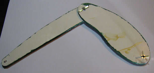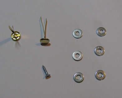 A continuación, coloque una segunda arandela en el sujetador.  Inserte el remache a través de uno de los agujeros de 1/4" en el extremo inferior de la placa trasera.  Añadir una arandela más al sujetador, y doblar el abierto de extremos del sujetador.