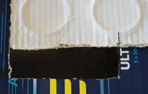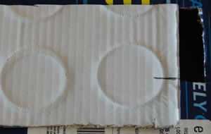 Usted tendrá que cortar a lo largo de esta línea, pero primero tienes que medir el otro lado! Ver la tercera foto, se alinea en el agujero de una manera diferente, si quieres puedes combinar los cortes y las aletas en una sola pieza de cartón.