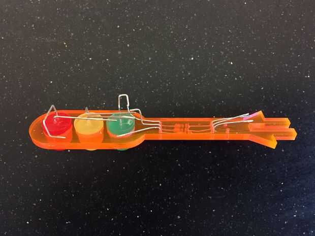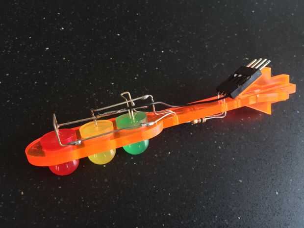 Montar los leds y doblar los alambres con una pinza pequeña de tal manera que el ánodo del led puede ser soldado a las resistencias sin hacer un corto circuito. Soldar el cátodo de los tres leds entre sí.