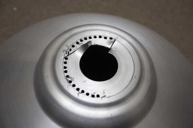 El primer paso es modificar la pantalla. El agujero en la parte trasera de la pantalla no es lo suficientemente grande como para que mi luz estroboscópica. Coloque el adaptador a la pantalla y trazar el interior hueco.