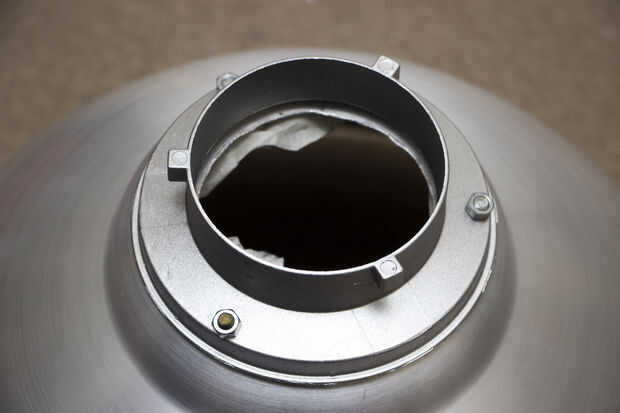 Debemos usar uno de los agujeros para sostener el reflector interno. Para hacer esto, acabo de poner un trozo de varilla roscada a través del agujero en su lugar. Esto conecta el adaptador a la pantalla, así como proporcionar un lugar para colocar un reflector interno.
