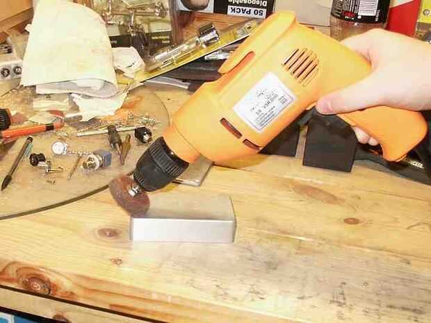 Ir por toda la superficie de la caja. Por lo general empiece en un extremo y mi manera de la parte inferior de la cara de la caja. Mueva el taladro angular de lado a lado y verás un patrón resaltado y pulido emergen en el aluminio.