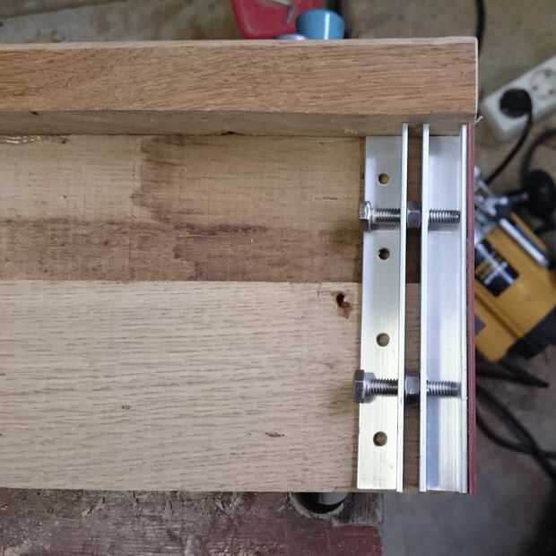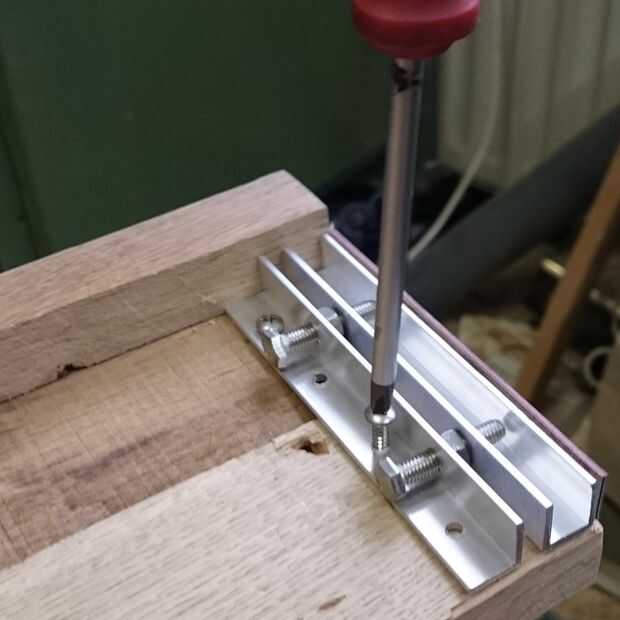 • Poner los tornillos por los agujeros de 6 mm de L-Perfil de adentro hacia afuera.