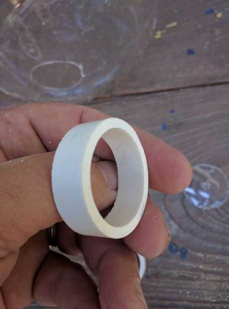 Cortar tubo de PVC de 1 1/4 en anillos de 3/4 de pulgada. Estos serán los collares para los puertos de alimentación. Corte de 4 a 6 de estos, dependiendo de cuántos puertos que desea en su comedero.