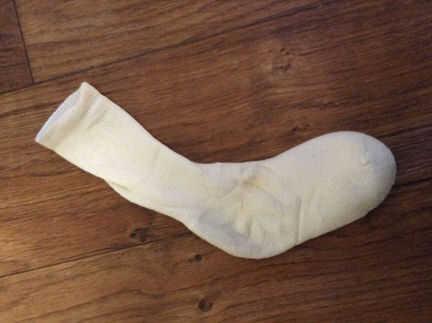 Vierta el arroz en el calcetín. Sólo debe llenar la parte del pie del calcetín. Utilice un embudo para salvar un posible desastre.