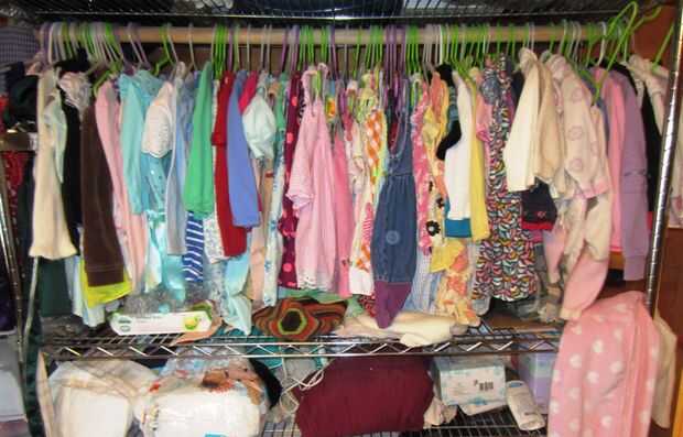 Para ropa de bebé colocar una barra de cortina de ducha en la parte superior para banda por paños. Utilizar cajas de zapato pequeño para poner cosas pequeñas como calcetines, gorros, guantes, pelo arquea o lazos... etc.
