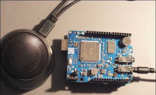 Conecte un altavoz externo o un auricular a la salida de Audio. Salida de audio está etiquetado como "Auriculares" y es la toma de audio más del micrófono de a bordo, cerca de las cabeceras de Arduino. Sólo puede conectar altavoces de impedancia de auriculares, como altavoces para ordenadores portátiles y teléfonos celulares.