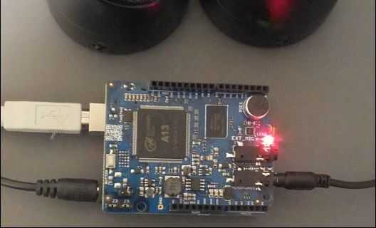 Conecte la fuente de alimentación externa a la placa Arduino y enciéndalo. Después de unos 2 segundos, verá parpadeo del LED (cerca del micrófono) de MOVI con mayor frecuencia. Los altavoces dicen "MOVI es arrancar". Finalmente el LED dejará de parpadear y a estar constantemente. Esto indica que movi está listo. Si el LED no va en nada, por favor apague y consulte el manual del usuario. Si, por el momento, el LED se ha convertido en rojo fijo, no oyes nada, Compruebe la conexión y altavoces/auricular.