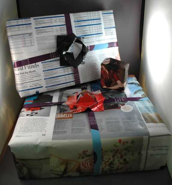 En esta pieza le mostraré cómo hacer papel de regalo revista sin costo y una caja de origami y arco para creativos e interesantes regalos, todo hecho de viejas revistas y tape.*