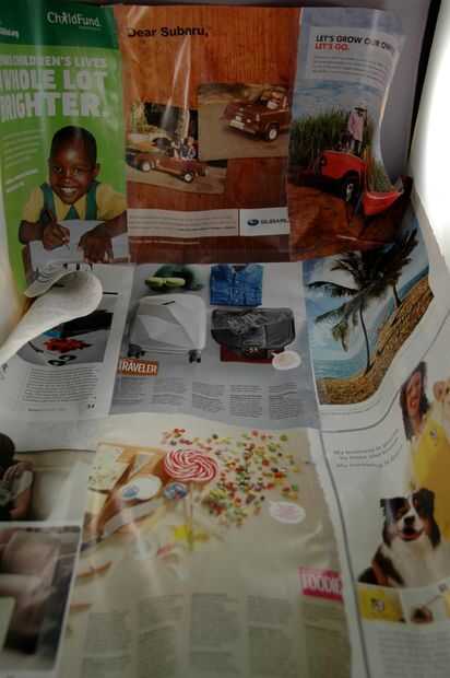 Mientras que está desgarrando páginas hacia fuera, rasgón hacia fuera de unos pocos que tienen colores fuertes, sobre todo sólidos en la página de las cintas y los arcos.