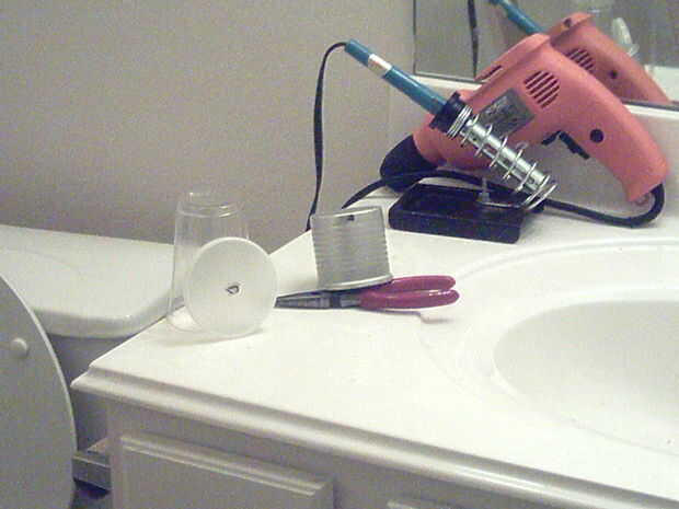 Taladro que un agujero en la Pringles puede tapa para que pueda el bulbo a través de la fuerza y ser lo suficientemente ceñido para no caer hacia fuera.