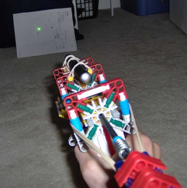 seamos realistas. Hay un montón de armas K'nex en Instructables. Después de buscar una mayoría de ellos, no estaba satisfecho con una sola. Algunos tenían buenas ideas, como un buen manejo, percutor o disparador, pero ninguno tenía todo. Así que, decidí hacer mi propia arma, reunir varias partes de otras armas. Nunca el miedo, todo el mundo que ideas utilicé obtener crédito en el siguiente paso.