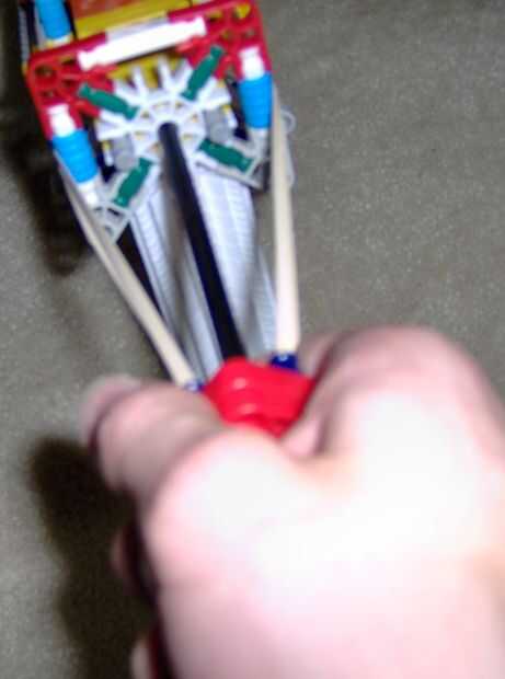 5: mueva hacia atrás los conectores rojo el percutor hasta que el gatillo en su lugar.