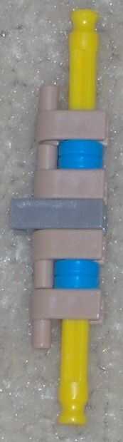 1: Make this. Usar un gris medio. 2: agregar más dos mitad-grises. 3: vuelta que pedazo boca abajo e inserte en la pistola. 4: Asegúrese de que estas cañas blanco alinean correctamente. 5: Añadir conectores gris 9 en cada una de las barras amarillas.