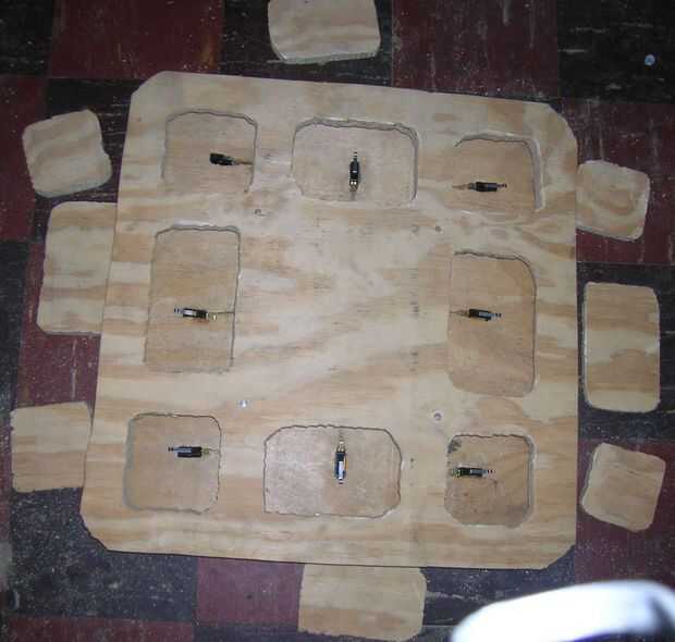 sí, sé que esto se ha hecho antes, pero queria construir mis propio, utilizando piezas como pocos como sea posible.  Construí este modelo de montaje de pared o mesa, pero puede ampliarse para hacer una mesa de café.  He construido como un estudio par