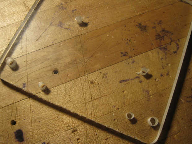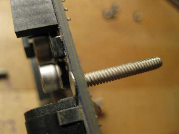 Usé tres tornillos de máquina #8-32 x 2" y algunos separadores para conectar las piezas de plexiglás inferior y superior. Usé una tuerca y una arandela estrella para unir todo.