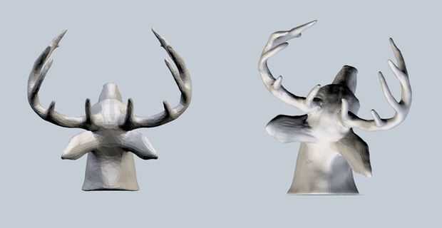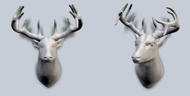 En crear facetas papercraft-objetos de krummrey instructable, el modelo de cabeza de venado utilizado por krummrey, no es simétrica. Así que desde la vista frontal, la cabeza de ciervo a la izquierda un poco.