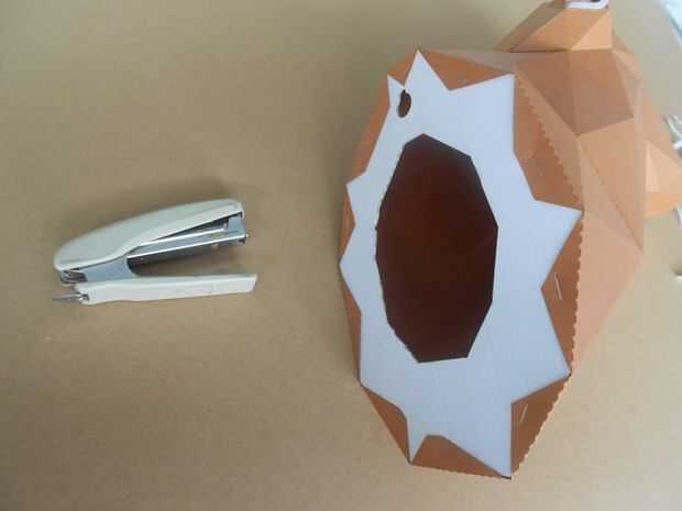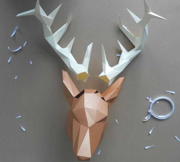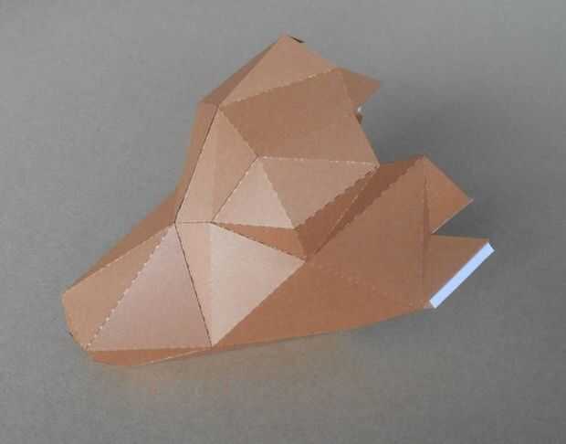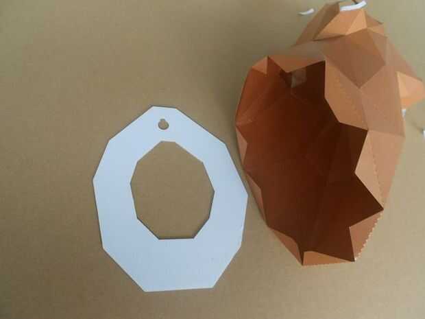 Recuerde: el lado impreso (líneas y números) debe terminar en el interior del modelo, por lo que no puede ver nada en la forma de cabeza de ciervo fuera. Por lo tanto más pliegues en este modelo será dobleces de Valle!