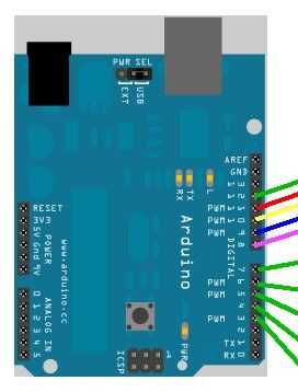 Mientras que uno puede utilizar cualquiera de los pines de I/O en el Arduino, elegí los pernos específicamente para permitirme usar código muy compacto para encender las columnas. Esto se explicará en detalle más adelante.