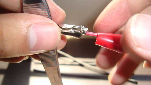 Paso 3: Retirar la cubierta y extra de alambre de los ganchos. [¿cuál es la diferencia entre cocodrilo y cocodrilo clips?]