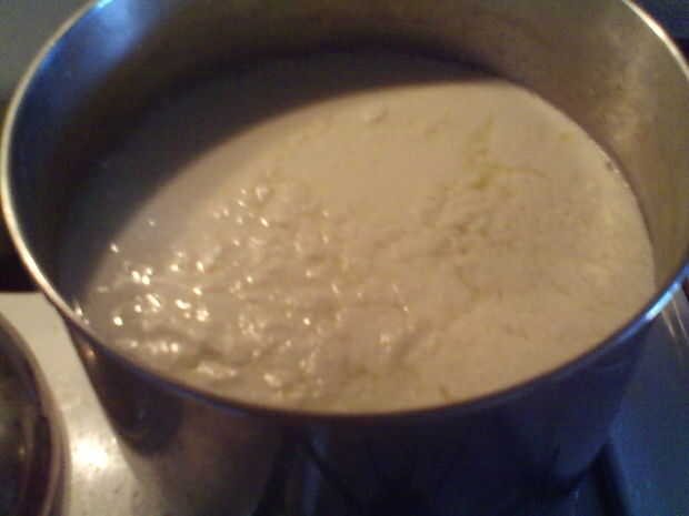 Añadir la solución de cuajo y vinagre a la leche y removemos bien...