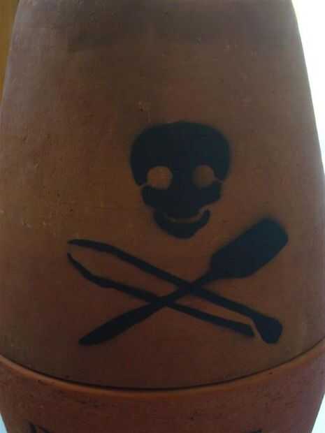 Pensé que parecía bastante normal, así que hice a un pirata stencil y aerosol pintado el exterior para que se vea un poco más interesante. También, mi amigo aprecia temas pirata.