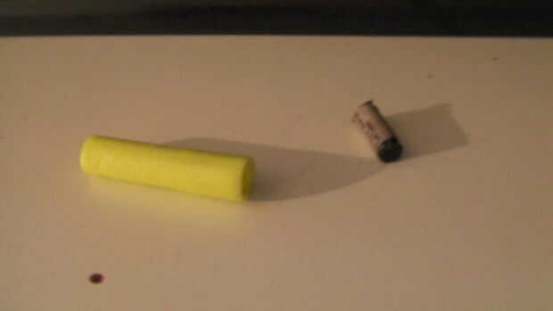 Luego, trabajar la tiza en cualquier extremo de los tubos de espuma que quieras, hasta que quede al ras. Se verá un poco bombeado hacia fuera, pero no te preocupes.