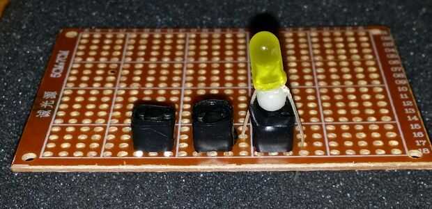 Más adelante a añadir las resistencias, la soldadura de las piezas en su lugar y recortar el PCB {por eso fuimos con papel/baquelita PCB en lugar de fibra de vidrio! ;-)} hacia abajo para que quepan en la cavidad de montaje de panel.