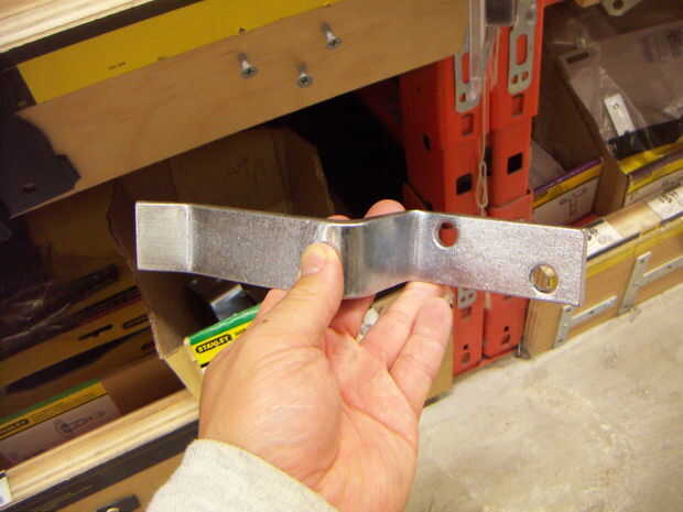 Las monturas son hechas de un Stanley "Puerta parada" (ver foto del cubo). Desde el estado original, cortar la parte superior "ala" y un taladro para que coincida con el tamaño del árbol. Usted podría preguntar por qué yo no toque en este agujero, la razón es que ejes de bicicleta parecen ser un hilo de bicho raro que no pude encontrar un grifo para.