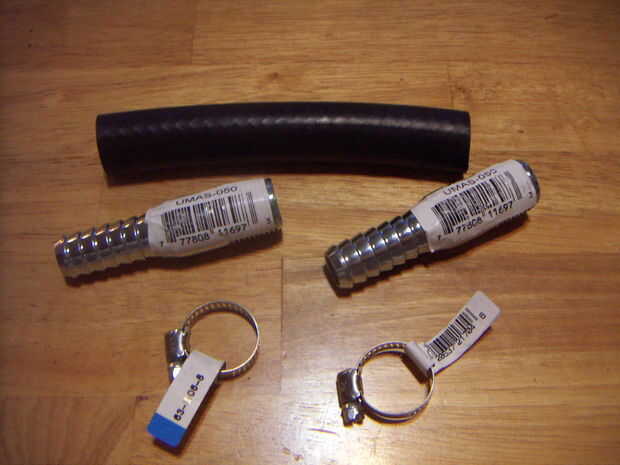 -tubo de goma, con refuerzo de fibra; atado con las abrazaderas de manguera