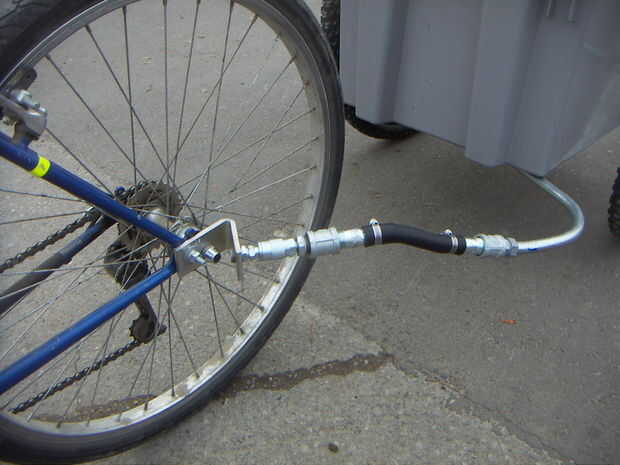 Sin embargo, después de tomar hacia fuera para un paseo, he encontrado algunos problemas. El tubo es lo suficientemente flexible como para que si el remolque está cargado, la conexión se combe en el frente. También, Obtén mucha de la acción de vaivén cuando estás pedaleando por la calle--surge hacia adelante y hacia atrás, dándole la sensación de ser un títere y titiritero al mismo tiempo.