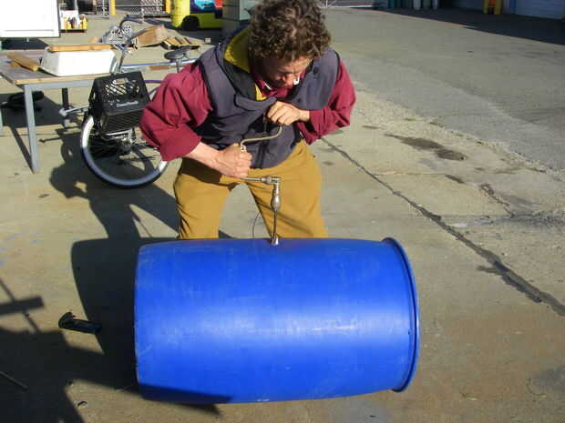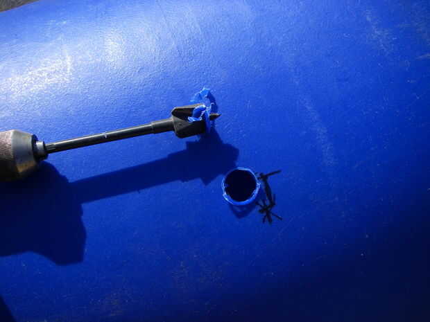 usé una madera de 1" mordido y un soporte para perforar los agujeros. Funcionó bien. Perforé mis agujeros de una pulgada o tan hacia la parte superior del cañón. Lo hice para que el cañón sería sentarse derecha cuando estaba vacía.