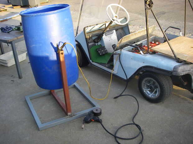 Tuve algunas piezas de marco cuadrado soldado con autógena alrededor que eran perfectos, por lo que había usado. Soldó con autógena la pieza en forma de U para el marco rectangular. Usé el soldador de carrito de golf con energía solar con un spoolgun para hacer la soldadura. Usé. 030" fluxcore alambre en 24 voltios, el avance se ejecutó a 18 voltios.