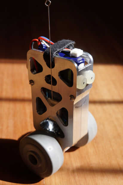 Un self balancing robot de dos ruedas que se tambalea, por lo tanto el nombre de WobblyBot.Posiblemente el diseño más simple para un robot que podría equilibrar (especie de) sobre dos ruedas, sin el uso de acelerómetro, el giroscopio o el microcontro