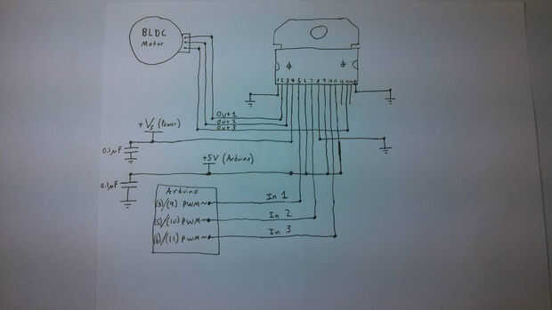 Es importante tener en cuenta que en su mayoría una forma improvisada de control de motores brushless. En un momento dado, queremos una corriente alta de electroimán, una baja y una en un estado de alta impedancia , que se aproxima a ni alta ni baja. En nuestro caso, el estado de "alta impedancia" deja realmente actual run off a tierra, que genera una cantidad significativa de calor en el motor. Un lugar definido para la mejora es que los motores se caliente en el caso de operación de largo plazo (por ejemplo sobre uno o dos minutos).