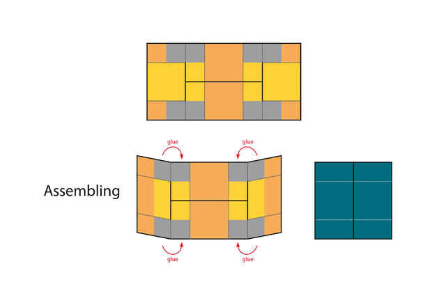 Una vez que lo tienes impreso (ambos lados) cutted y realzado las líneas plegables que tienen pegamento en el área marcada