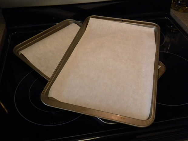 2. línea de hojas de la hornada o galleta con papel sulfurizado.