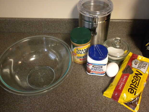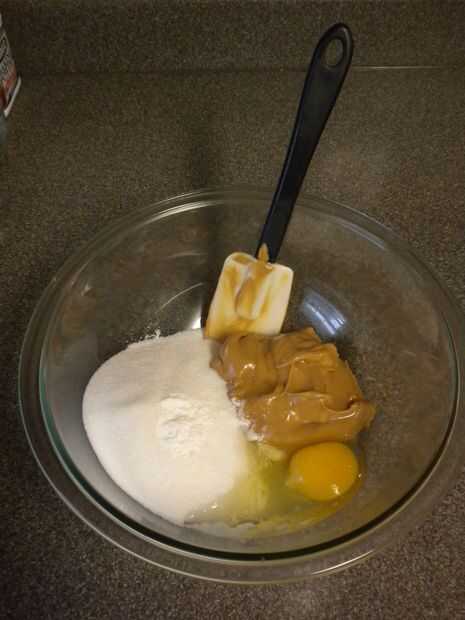 receta por Christina Provo (www.runningfoodie.com)Estas galletas de mantequilla de maní masticables se presenta con un capa de café.Paso 1: Ingredientes- 1 taza más 3 cucharadas de harina1 taza de harina de pan3/4 de cucharadita de bicarbonato de sod