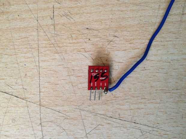 Primera soldadura de la placa de base sólida de 17 cm (unos 13cm para el módulo de 315MHz) cable con el conector Ant en el módulo Tx... la antena adicional aumenta el alcance de la comunicación y mejora el rendimiento en el interior.