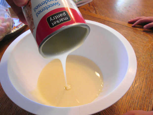 Añadir seis 6 cucharadas de su jugo de limón fresco a la una lata de leche condensada.