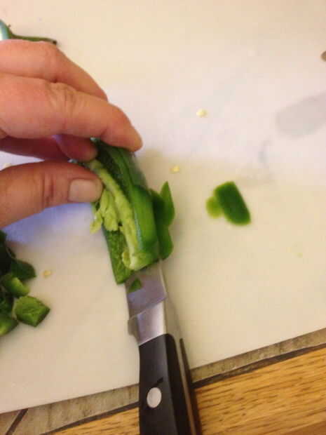 Cualquiera tu decide, en la piel o la piel apagado, es necesario cortar a lo largo de los pepper sabio en tiras.