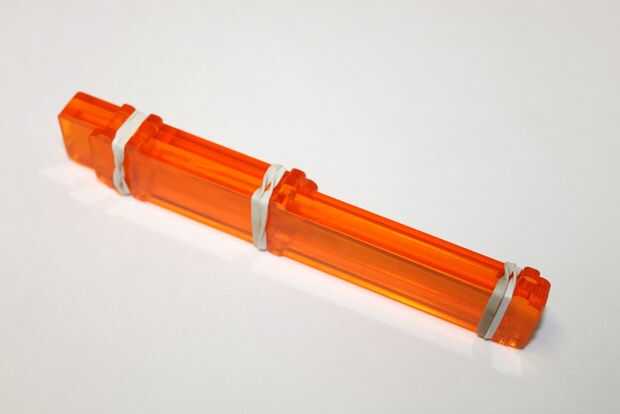 Mi versión sólo muestra una posibilidad de hacer uno sin la necesidad de unir las piezas. Ya que es parte de mi serie de calendario de Adviento de corte láser quería utilizar sólo gomas y pernos, al lado del láser cortan piezas. En este caso mantenía a las bandas de goma solamente. También quería hacer el diseño tolerante a la variación de espesor, como la hoja de acrílico se documenta para variar hasta + - 15% de su espesor nominal. El resultado es realmente muy indiferente para el grueso de la hoja, que probablemente funciona de 1 mm a 5 mm y hacia arriba.